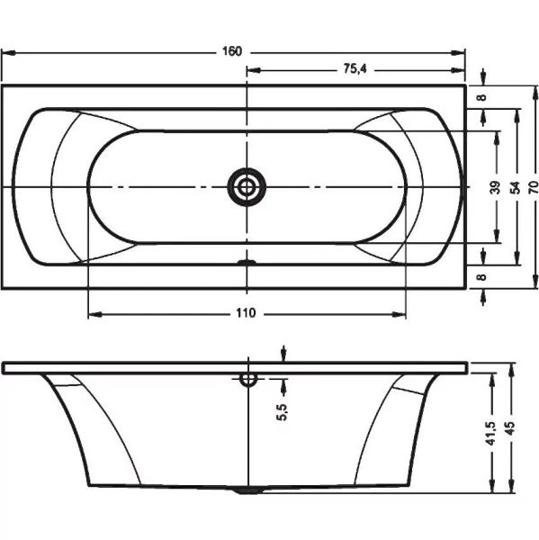 Акриловая ванна RIHO Lima 160x70 изготовлена из высококачественного листа акрила белого цвета, полностью армирована.
