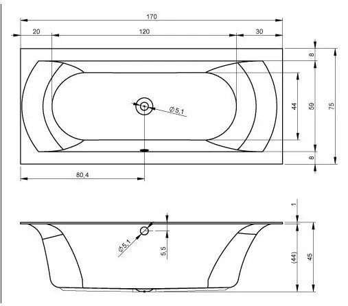 Акриловая ванна RIHO Linares 170x75 изготовлена из высококачественного листа акрила белого цвета, полностью армирована.
