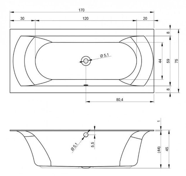 Материал непористый и гладкий, поэтому на нём не остаются известковый налёт и бактерии, поверхность ванны легко очищается.