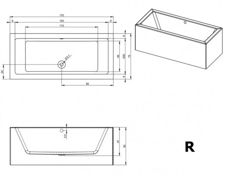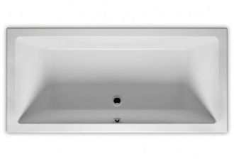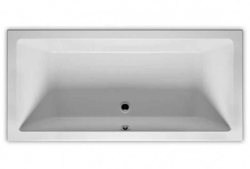 Прямоугольная? ванна RIHO Lugo 170x75 R Plug & Play, из глянцевого белого акрила с прямыми симметричными спинками, гладкой внутренней формой и центральным сливом, представляет собой полностью собранную на заводе конструкцию.