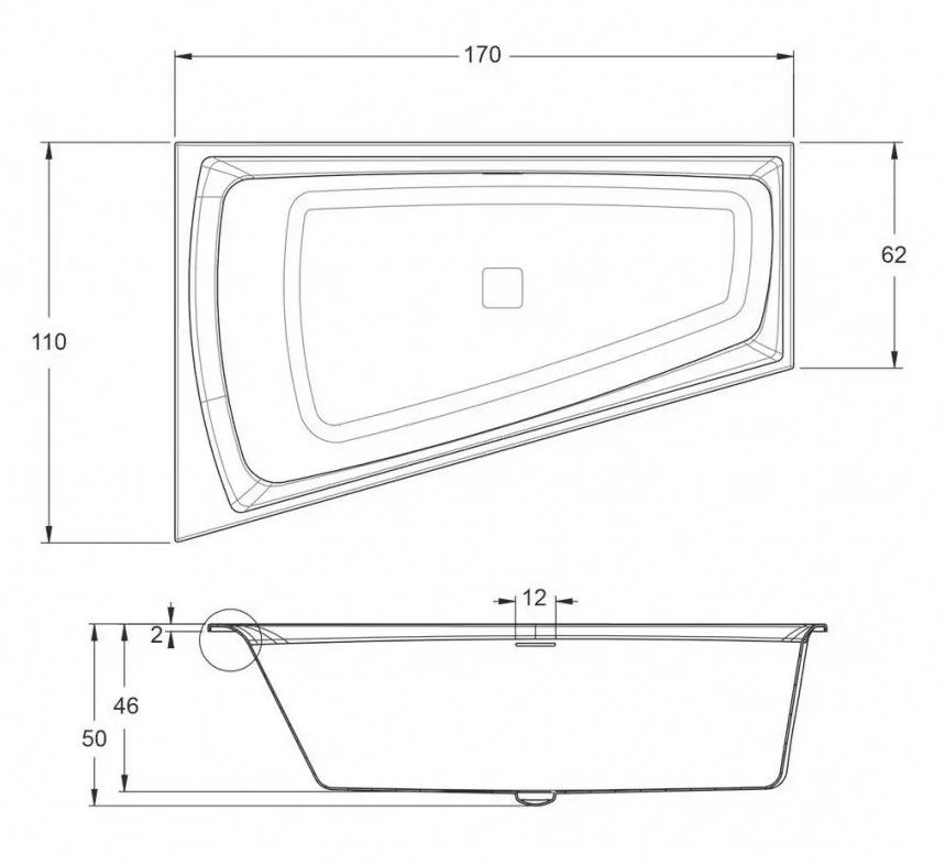 Встраиваемая акриловая асимметричная ванна RIHO Still Smart 170x110R Fall с удобным просторным местом для лежания.RIHO Fall - наполнение ванны через переливное отверстие. Носик смесителя - внутри ванны.