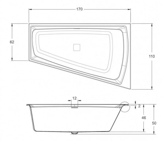 Встраиваемая акриловая асимметричная ванна RIHO Still Smart 170x110L Fall с удобным просторным местом для лежания.RIHO Fall - наполнение ванны через переливное отверстие. Носик смесителя - внутри ванны.