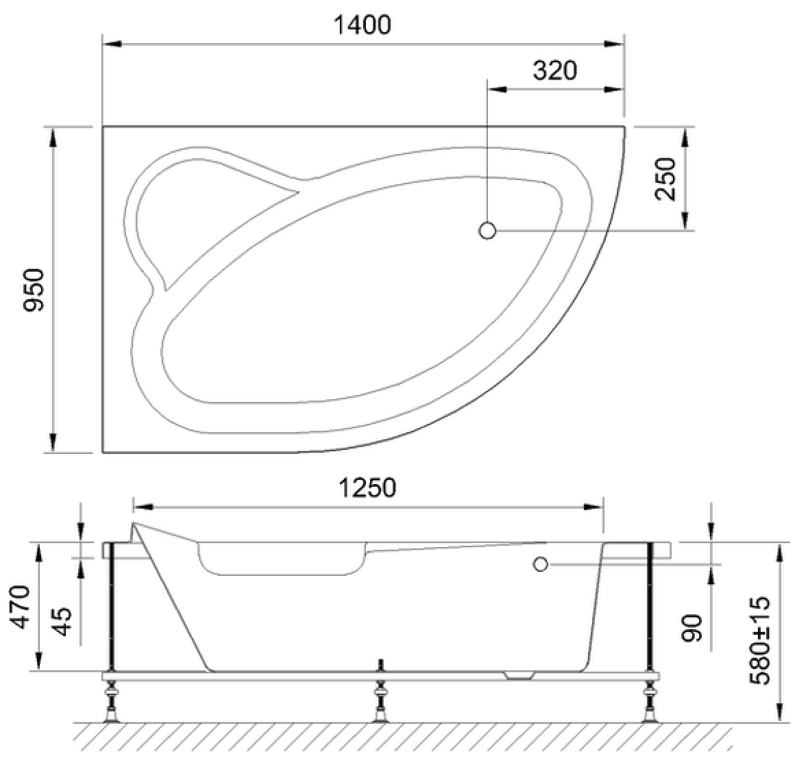 Акриловая угловая ванна ALPINE 140x95x58 имеет ассиметричную форму с четкими линиями изгибов что позволяет ей отлично гармонировать практически в любом интерьере. Анатомическая, округлая форма чаши позволяет комфортно разместиться в ней одному человеку, а диагональное расположение позволяет разместить в углу просторное сидение.