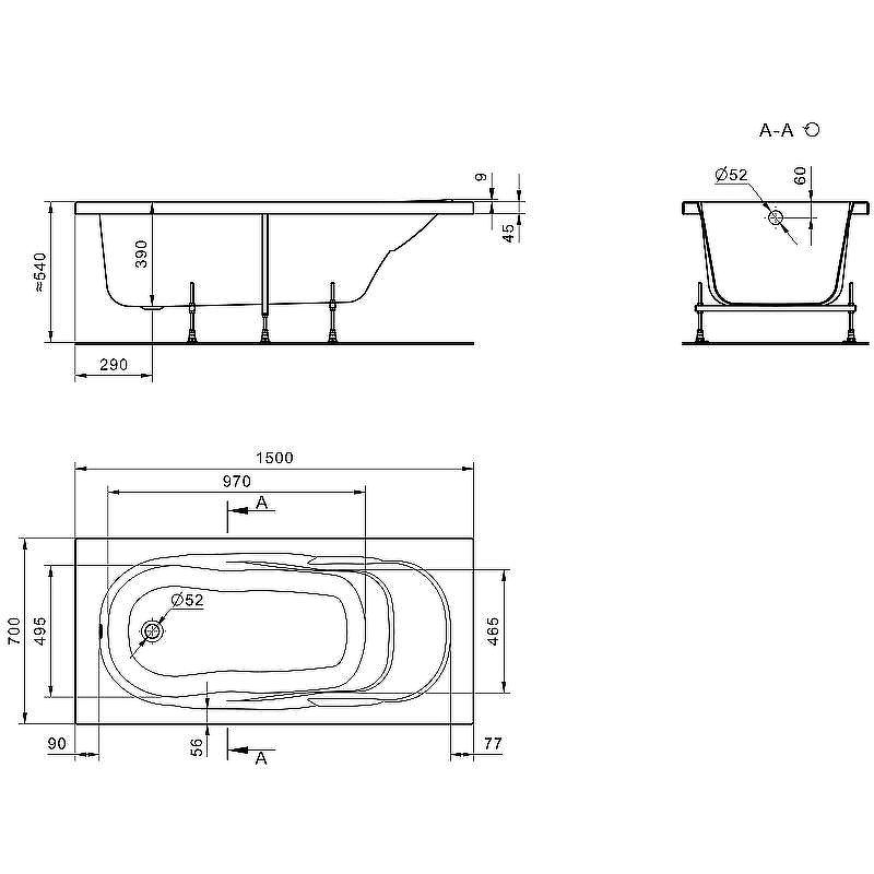 Размеры ванны (см)