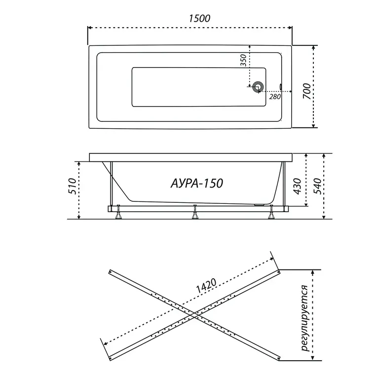 Акриловая ванна Triton Аура Щ0000043571 150x70 см на Х-каркасе белый