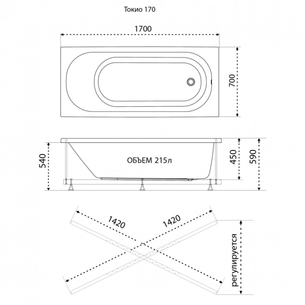 Акриловая ванна Triton Токио Щ0000062643 170x70 см белый