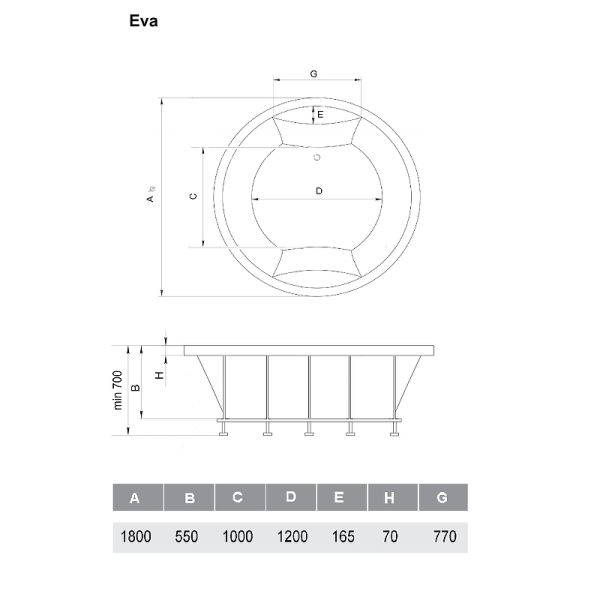 Акриловая ванна Vayer Eva 180x180 Гл000025681 без гидромассажа