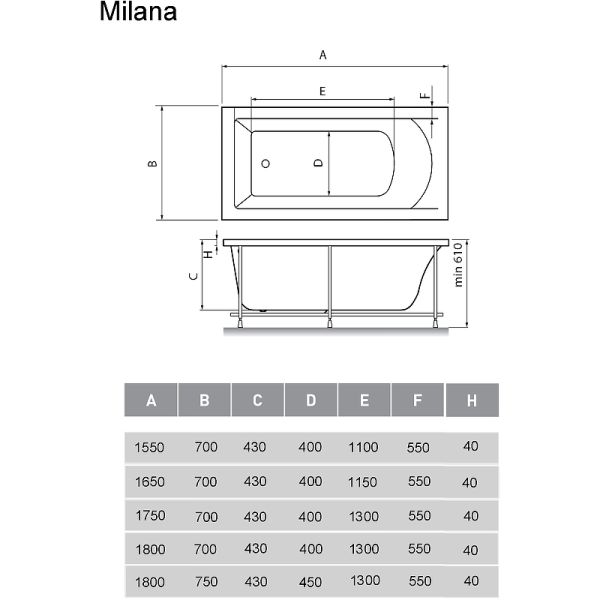 Акриловая ванна Vayer Milana 155x70 Гл000024269 без гидромассажа
