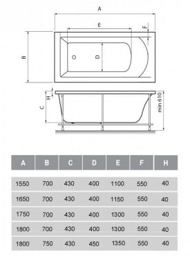 Усиленное дно и борт ванны.