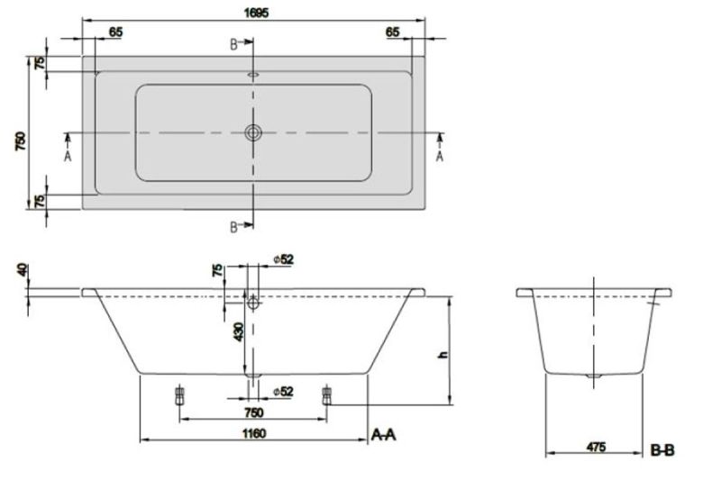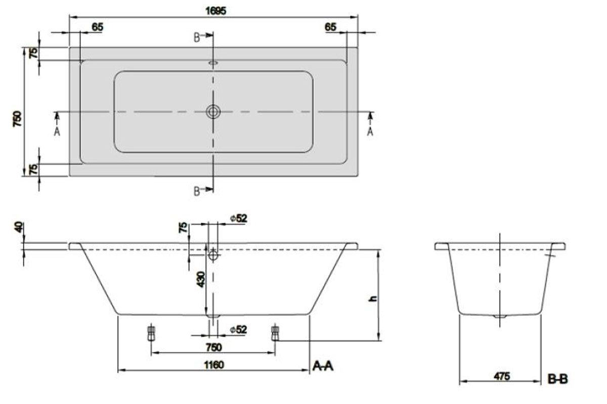 Акриловая ванна Villeroy Boch Targa Plus Duo UBA170NES2V01+U99740000 170х75 см ножки в комплектеРазмер: 170х75х43 см