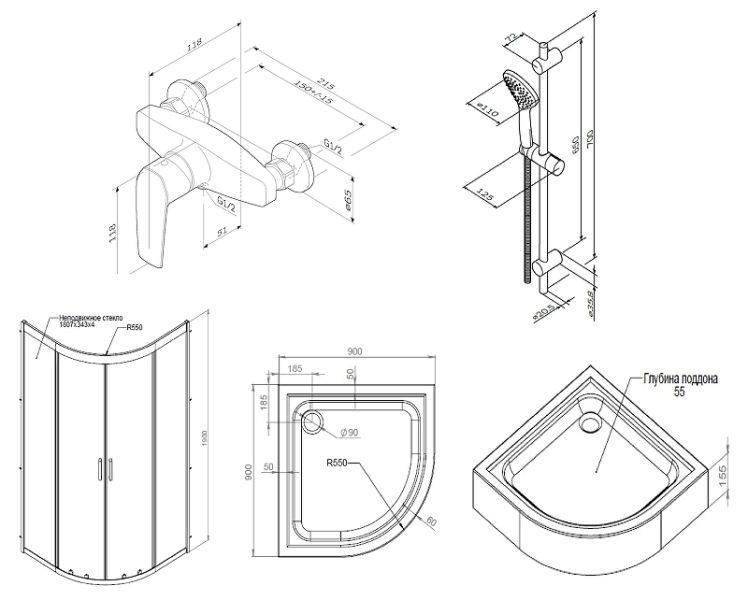 Душевой поддон:Устойчив к воздействию влаги и образованию плесени.