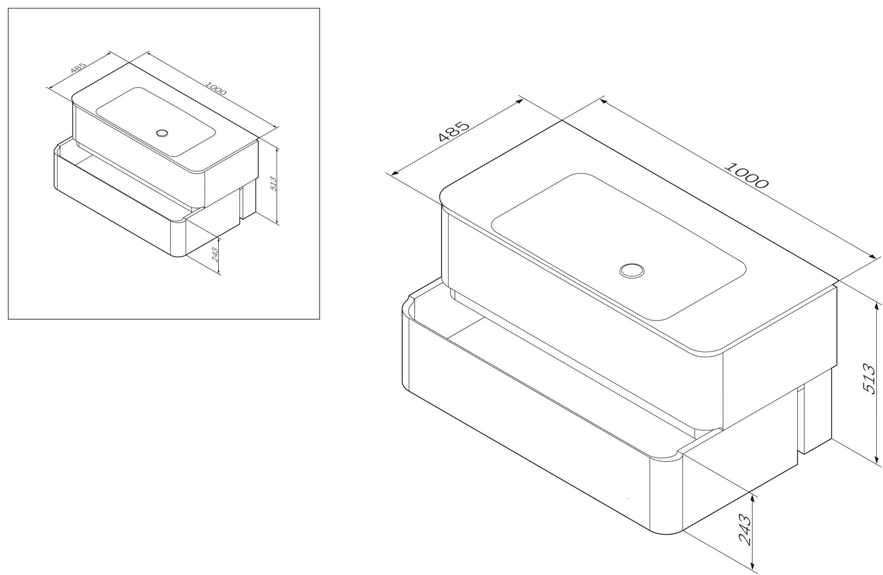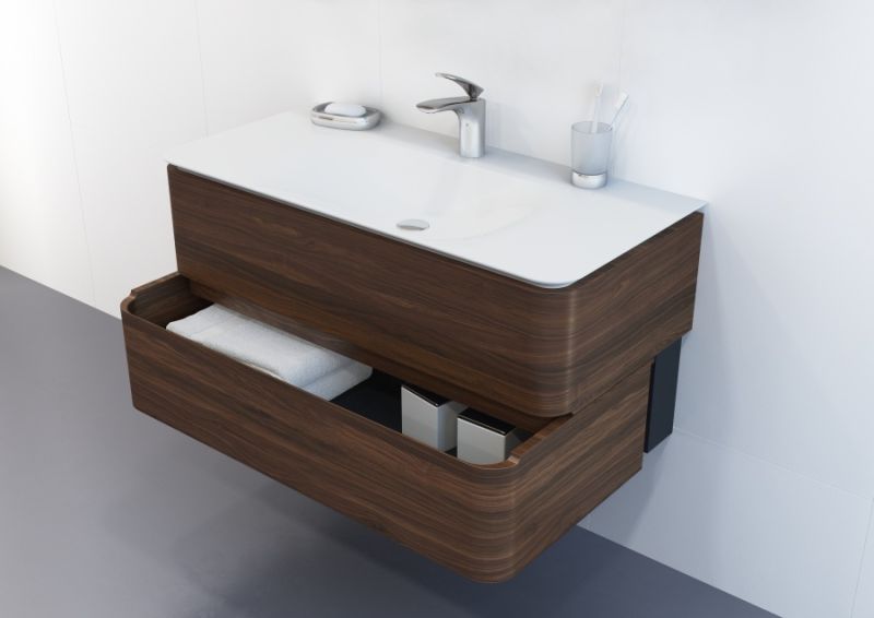 Эксклюзивное дизайнерское решение: боковые стенки и фасад представляют собой единое целое, предоставляя ящикам возможность полного выдвижения