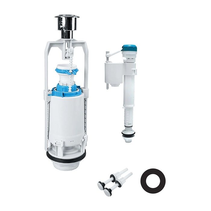 Одноуровневая арматура с нижним подводом воды (тип А) Комплектация: Круглая резиновая прокладка, пластиковые крепления-болты (2 шт.), паспорт изделия. Все подвижные части находятся внутри защитного корпуса и изготовлены из высококачественного пластика. Гарантия 7 лет.