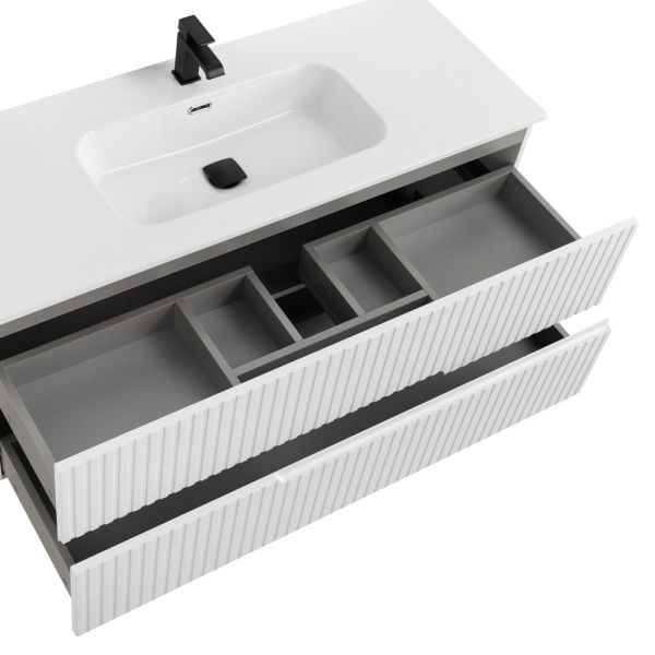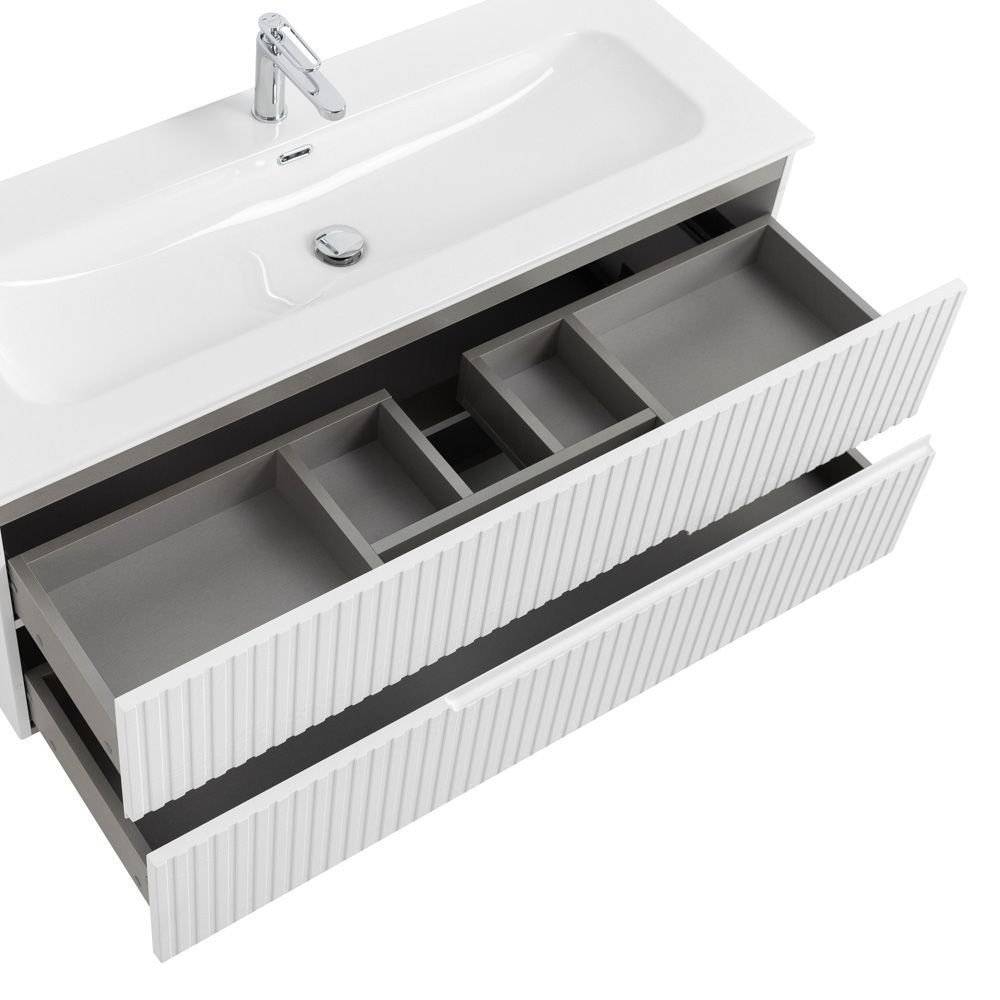 База под раковину Cezares подвесная с двумя выкатными ящиками, Ясень белый Софт, 1200x457x500, DUET-N-1200-2C-SO-FBS-P