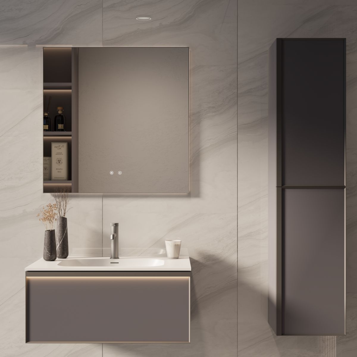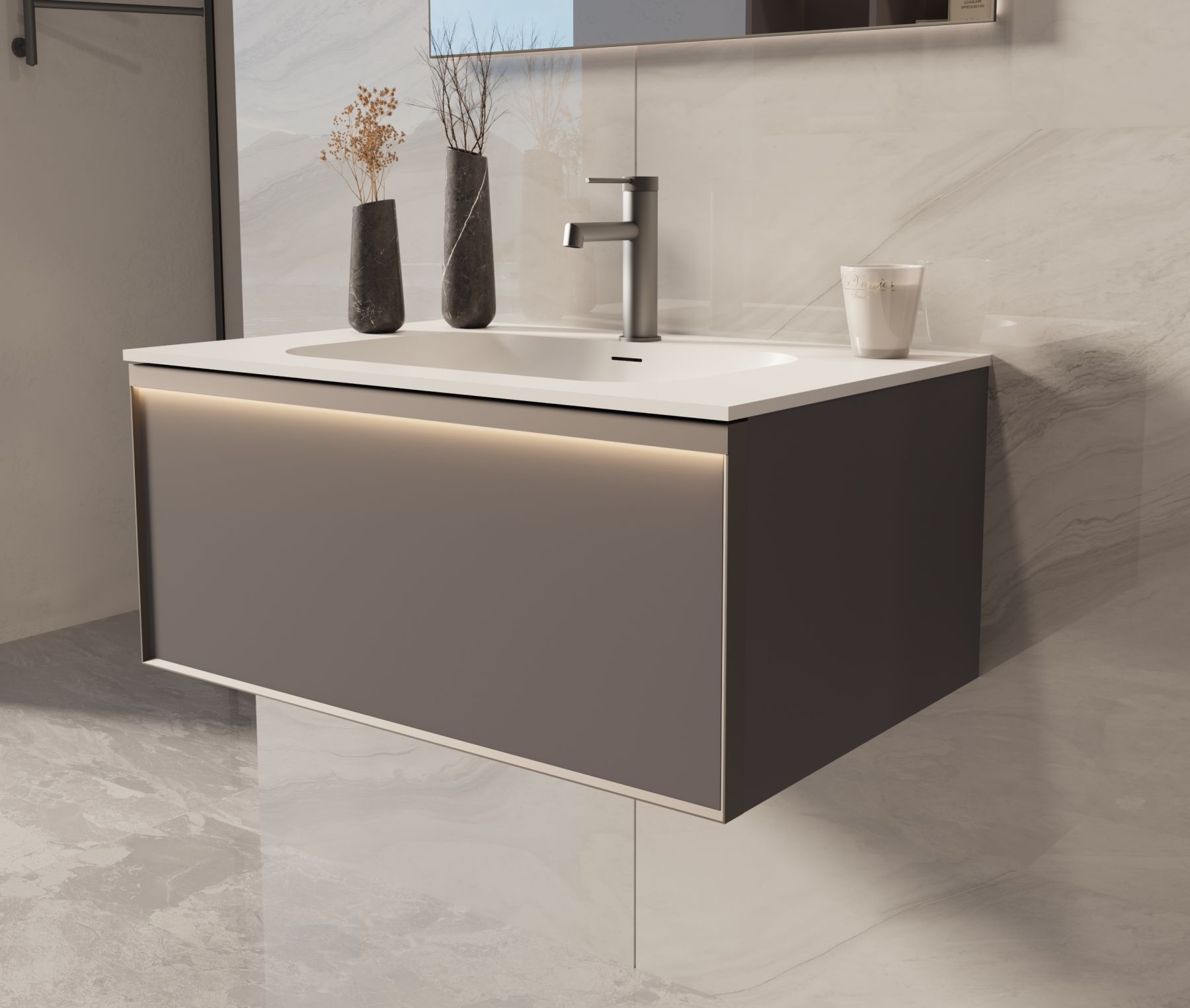 База под раковину Vincea Elise 800 подвесная, 2 выкатных ящика soft-close, серый матовый