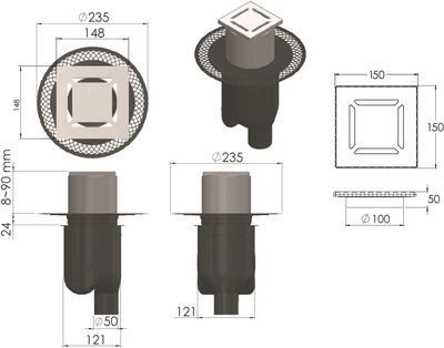 Душевой трап Berges Wasserhaus Platz Norma 090059 15x15 см