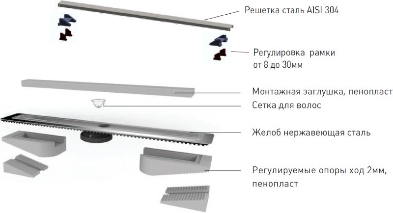 Душевой лоток Berges Wasserhaus C1 Norma 090134 30 Матовый хром купить