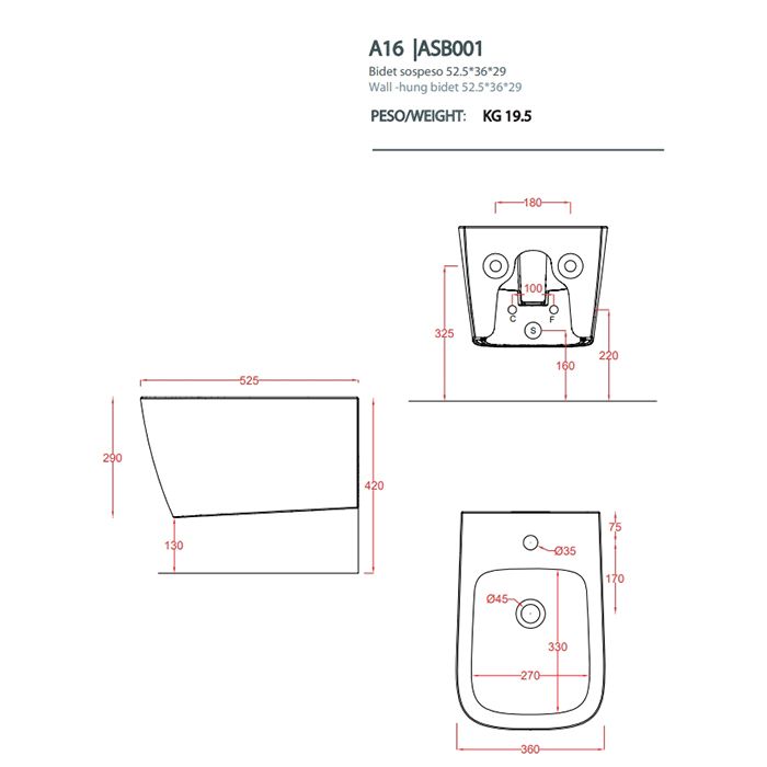 Биде Artceram A16 ASB001 17 00 черноеArtceram A16 Биде подвесное 52,5х36см, 1 отв под смеситель, цвет: черный матовый