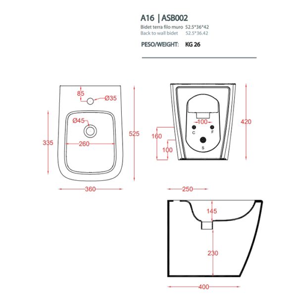 Artceram A16 Биде напольное 52,5х36хh42см, с 1 отв под смеситель, цвет: grigio oliva