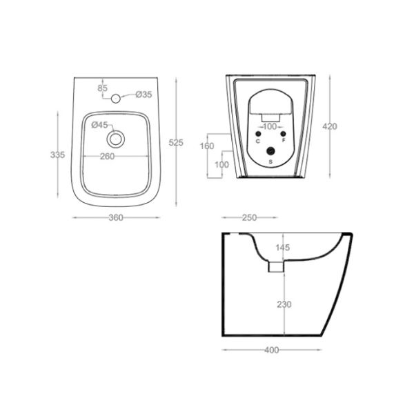 Биде Artceram A16 ASB002 36 00 notteArtceram A16 Биде напольное 36х52 см, 1 отверстие, цвет notte