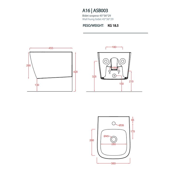 Биде Artceram A16 MINI ASB003 01 00 белоеArtceram A16 MINI Биде подвесное 36х45 см, с 1 отв под смеситель, с креплениями, цвет белый.