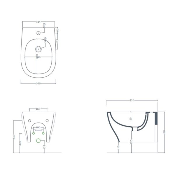 Биде Artceram TEN TEB004 17 00 черноеArtceram TEN Биде подвесное 52х36см, 1 отв под смеситель, цвет: черный матовый