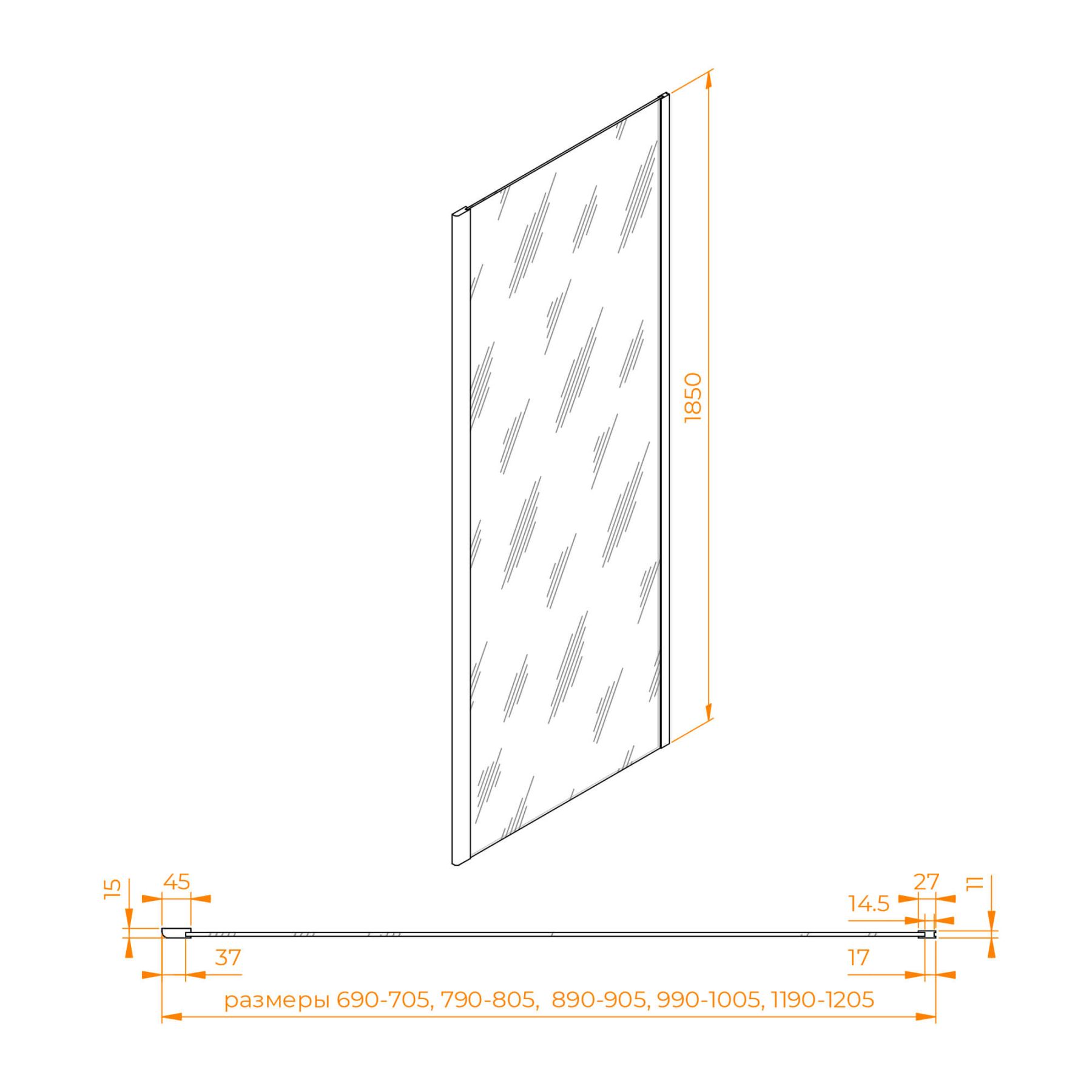 Комплектуется с моделями высотой 1850 мм и цветом профиля «чёрный». Подходит к моделям PA-02 / CL-14