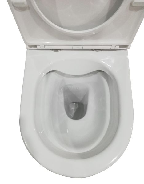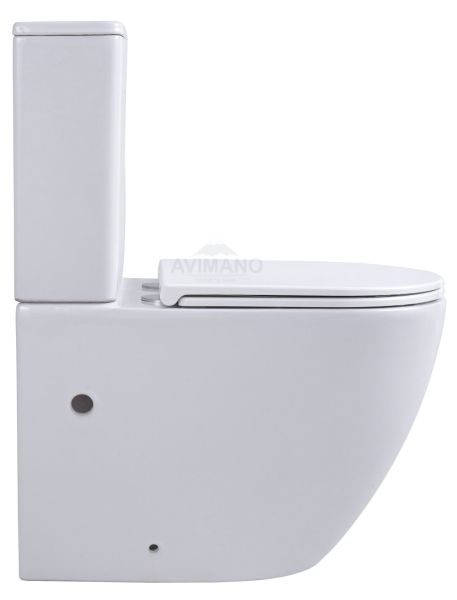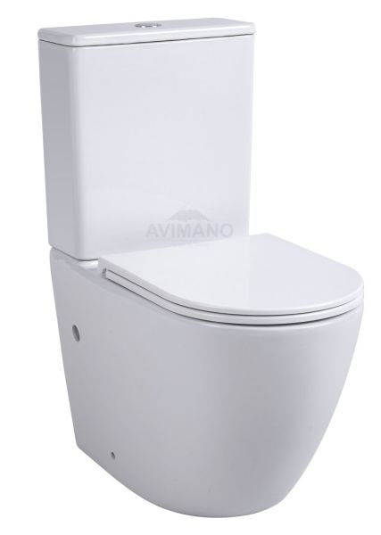 Безободковый унитаз-компакт с крышкой-сидением из дюропласта с функцией soft-close и quick release, система слива 3/4,5л.