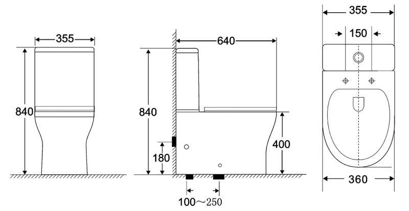 • Горизонтальный выпуск воды P-Trap