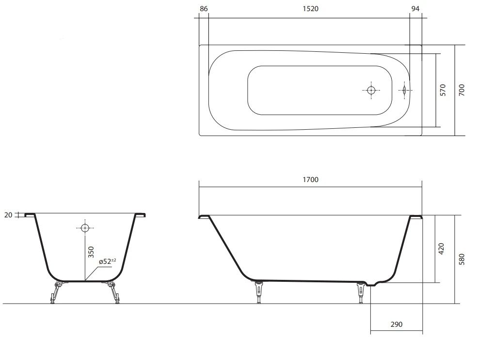 Чугунная ванна Aquatek Сигма AQ8870F-00 170x70см белый купить