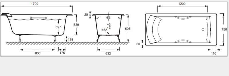 Чугунная ванна Jacob Delafon BIOVE E2930-00 170x75