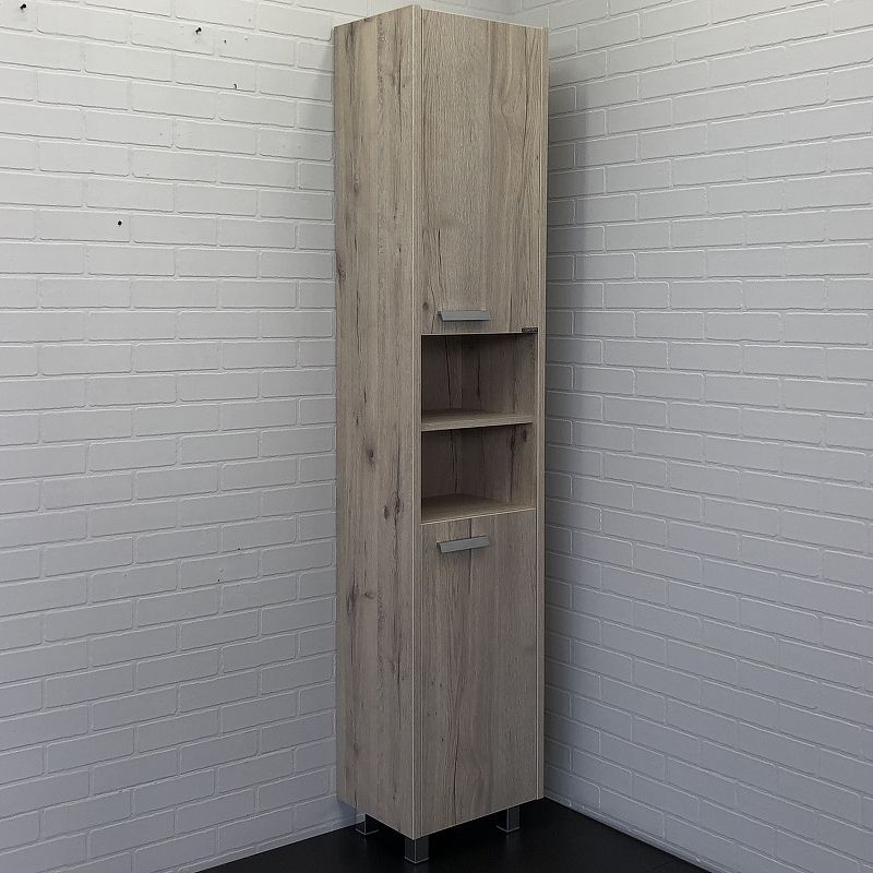 Система хранения: две распашные <a data-im="sng" href="https://santehnika-tut.ru/product/shkaf-penal-comforty-mario-40-0000005976-dub-dymchatyj-366545.html" >Шкаф пенал Comforty Марио 40 00-00005976 Дуб дымчатый</a> двери с доводчиками, за нижней дверцей одна полка, за верхней дверцей две полки, открытая полка.