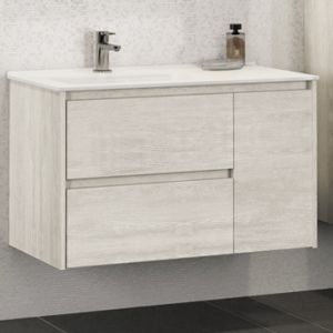 Comforty Тумба-умывальник "Бремен-90" дуб белый с раковиной Comforty 9090EL