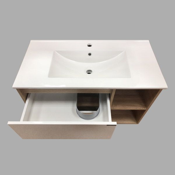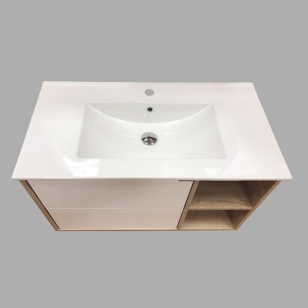 Название: Тумба-умывальник Артикул: Бремен 90 Цвет корпуса и фасада: Дуб белый Материал: влагостойкое ЛДСП Габариты (ШхВхГ): 910*555*465 мм Комплектация: накладная раковина Comforty 9090EL. Подвесная тумба с двумя выдвижными ящиками и одной распашной створкой. Направляющие для ящиков и петли дверцы оборудованы механизмами плавного закрывания. В комплекте асимметричная раковина с широким правым "крылом".