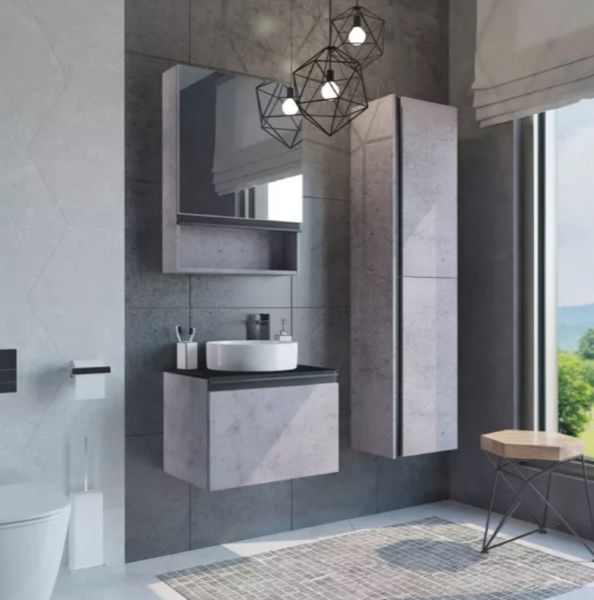 Тумба с раковиной Comfortу Эдинбург-60, 00-00002782, 1 ящик, подвесная, раковина Comforty 9111, бетон светлыйТумба с раковиной