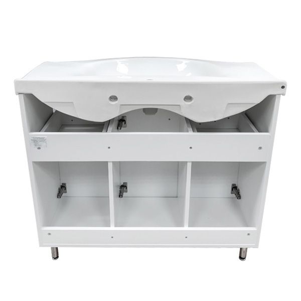 Название: Тумба-умывальник Артикул: Сочи 100 Варианты цвета корпуса: Белый глянец Материал корпуса: влагостойкое ЛДСП Цвет фасада: Белый глянец Материал фасада: МДФ Габариты (ШхВхГ): 1050*880*520 мм Комплектация: Сантек Эльбрус
