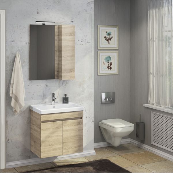 Comforty Тумба-умывальник "Тромсе-60" дуб сонома с раковиной Fest 60 F01