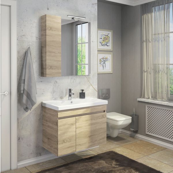Название: Тумба-умывальник Артикул: Тромсе 80 Варианты цвета корпуса и фасада: Дуб Сонома Матери... Подробнее