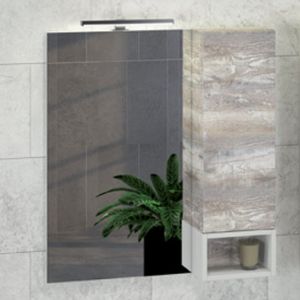 Створка мебельного элемента оснащена системой push-to-open (открытие при нажатии). Высококачественное зеркальное полотно с амальгамой на основе серебра. Дополнительно может оснащаться светильником. Фасад и корпус из влагостойкого ЛДСП Дуб бежевый. За створкой одна горизонтальная полка. Название: Зеркало-шкаф