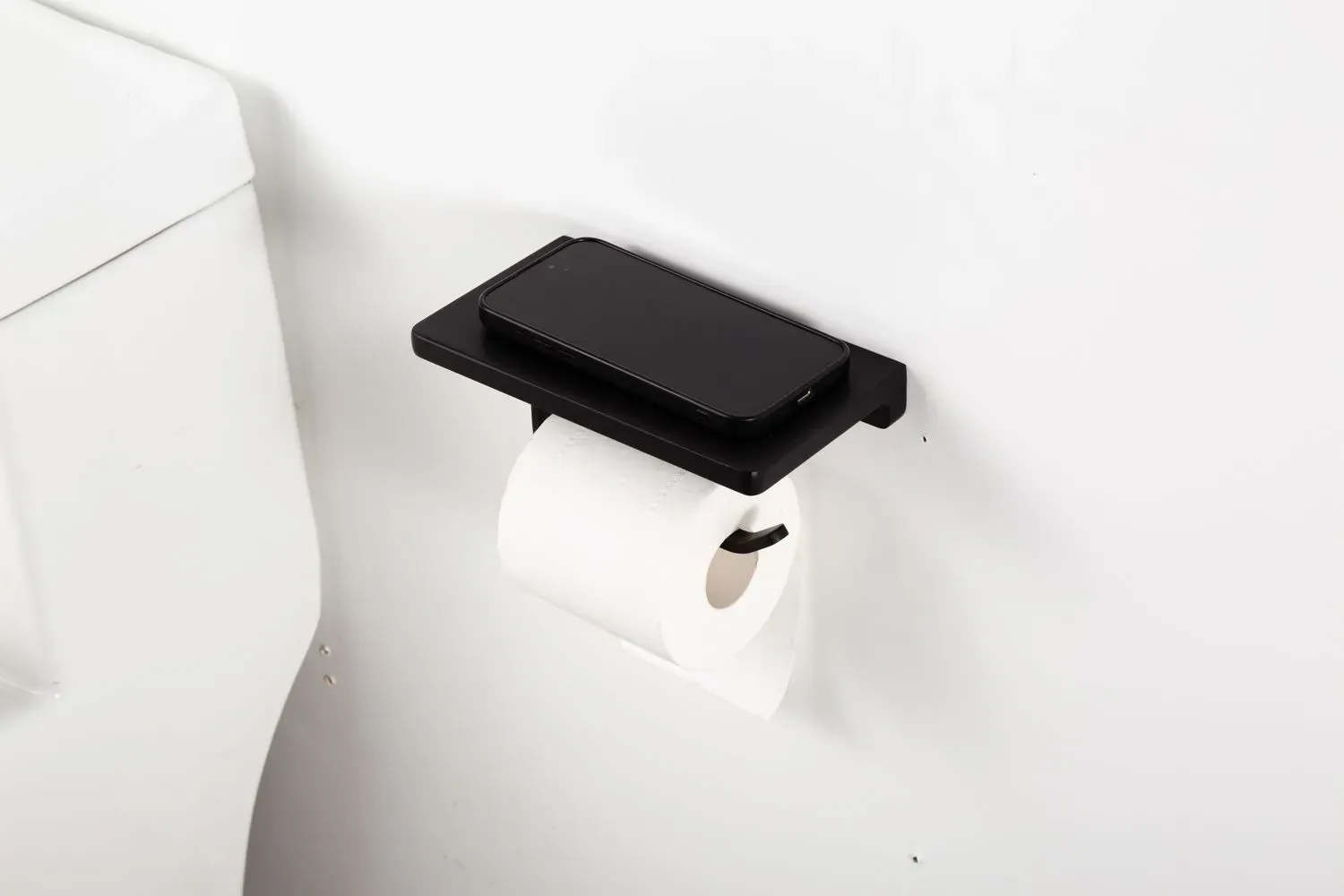 Держатель для туалетной бумаги Gappo G30803-6 с полочкой чёрный