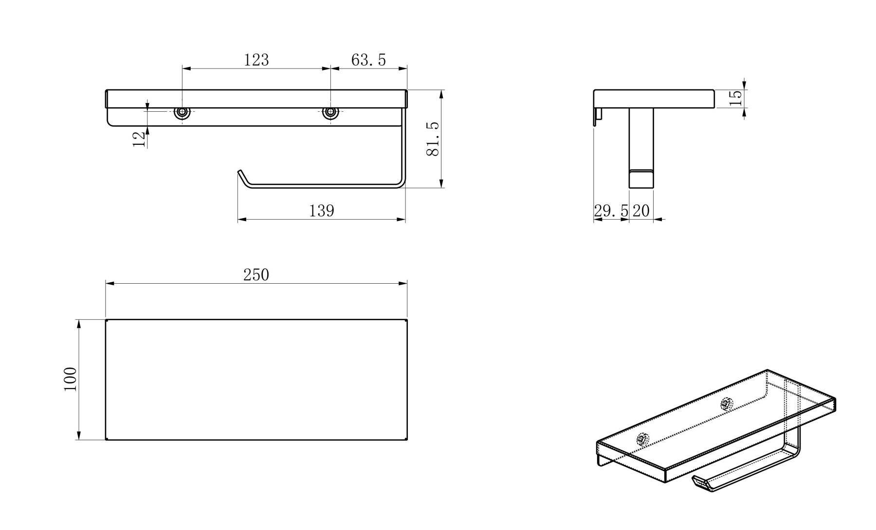 Держатель для туалетной бумаги с полкой Wonzon & Woghand WW-V2801-MB чёрный матовый
