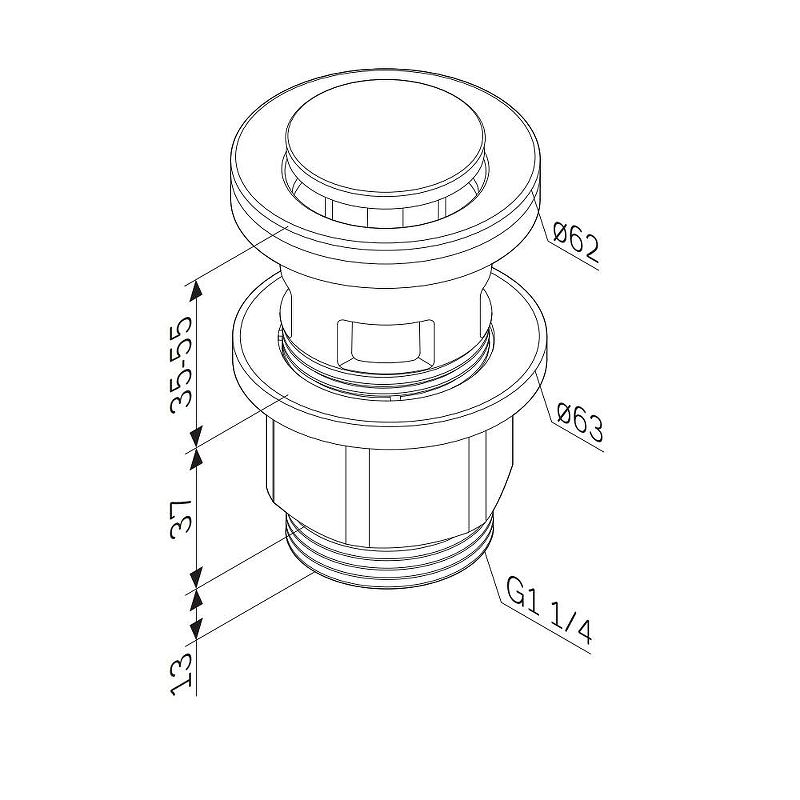 С отверстием для подключения перелива позволяющего выпускать воду из раковины при ее переполнении через отверстие в нижней части перелива. Система клик-клак управляется нажатием  на пробку слива. Покрытие устойчиво к коррозии, появлению царапин, сколов и потускнению. Круглая заглушка в цвете розовое золото. Подключение к сифону: G1 1/4