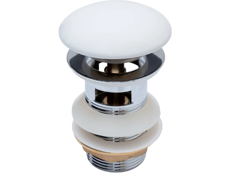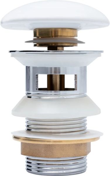 Донный клапан латунь с переливом крышка керамика белый матовый (333928)