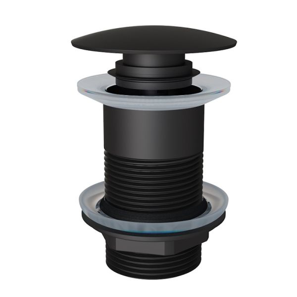 Донный клапан нажимной без перелива в матовом черном цвете. Надежная работа CLICK-CLACK механизма, простота ухода и долговечность. Для тех, кто устал от протекающих клапанов и следов воды.