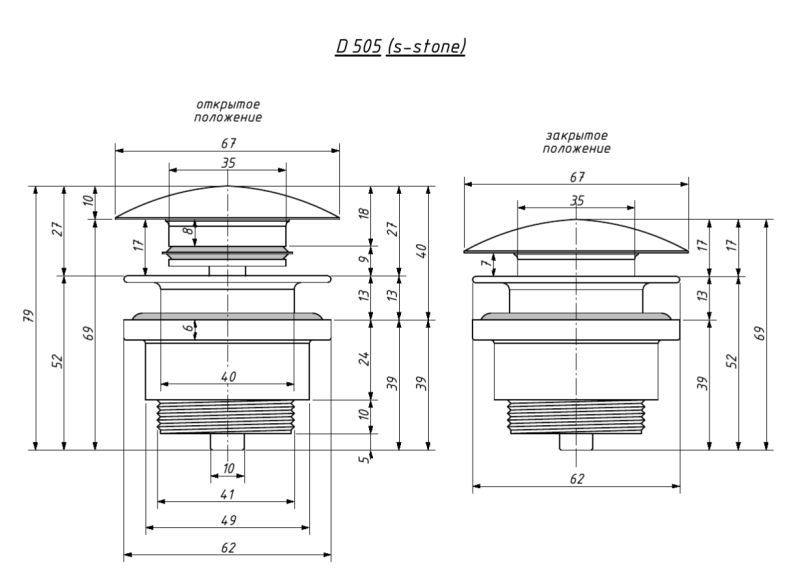 Донный клапан окрашивается в цвет основного изделия по палитре RAL Classic.