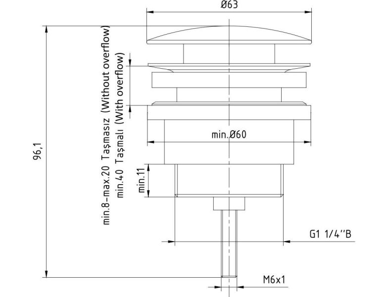 • Диаметр слива: G 1 1/4"