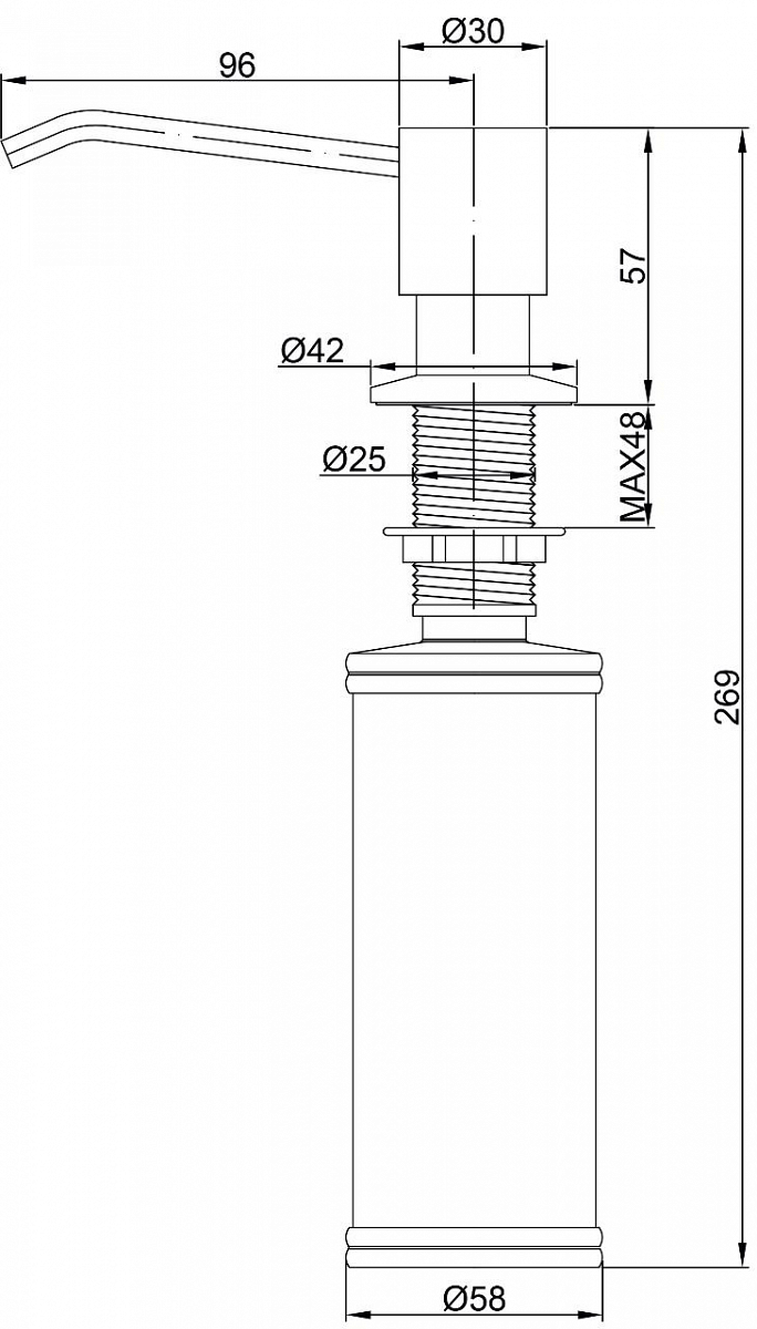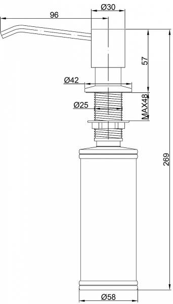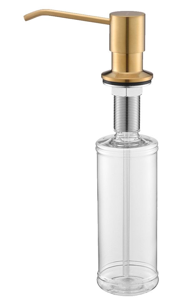 Дозатор для кухни и ванной, артикул D002-BGДозатор для кухни или ванной серии Rein, встраиваемый, объемом 350 мл, матовая поверхность, изготовлен из латуни и пластика.
