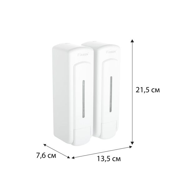 Дозатор для ж/м настенный двойной 325+325мл Fixsen HOTEL пластик белый (FX-31012H-2)