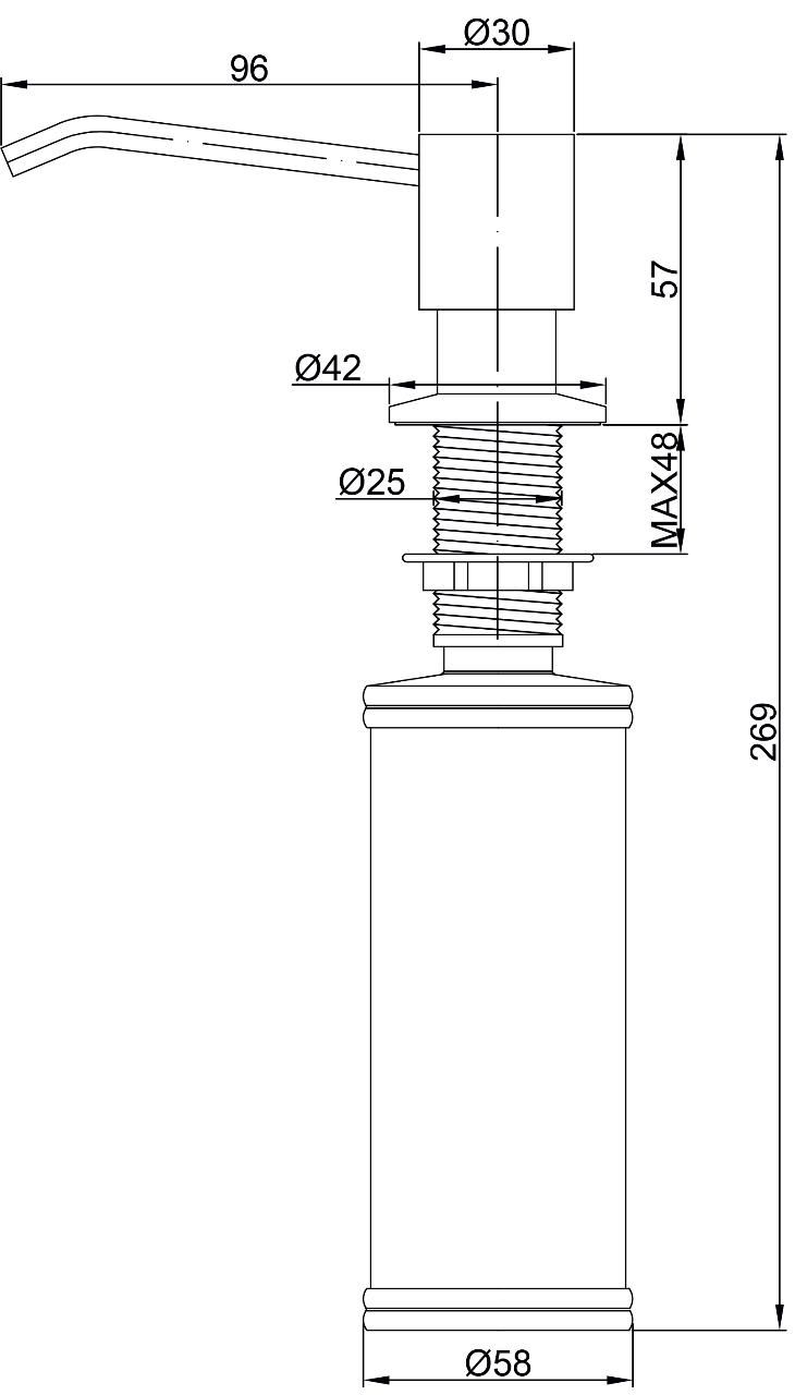 Дозатор для кухни и ванной, артикул D002-NIДозатор для кухни или ванной серии Rein, встраиваемый, объемом 350 мл, матовая поверхность, изготовлен из латуни и пластика.
