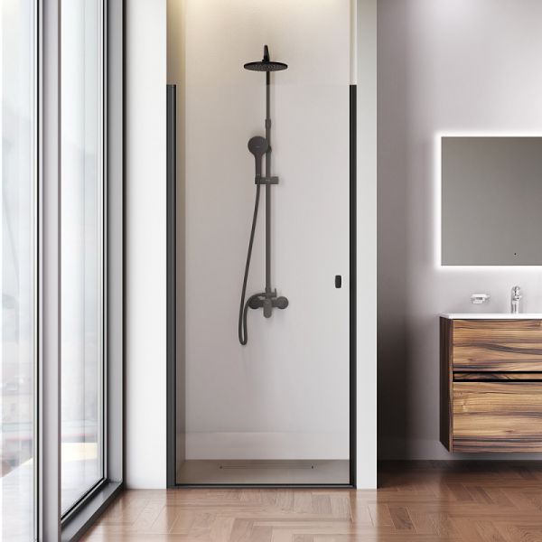Душевая дверь AM.PM Sunny W87G-90-1P-BT прозрачное стекло профиль черный матовый 90x190Душевые двери в нишу из коллекции Sunny сделают ванную комнату вашим тайным местом силы и перезагрузки. Эстетика и функциональность - то, что моментально приковывает взгляды. Исключительный дизайн, к которому хочется прикоснуться. Цвет профиля - черный матовый. Размер (Ш/Г/В): 900x24x1900 мм. Материал перегородки с дверью - прозрачное стекло, алюминий. Толщина стекла - 5 мм.